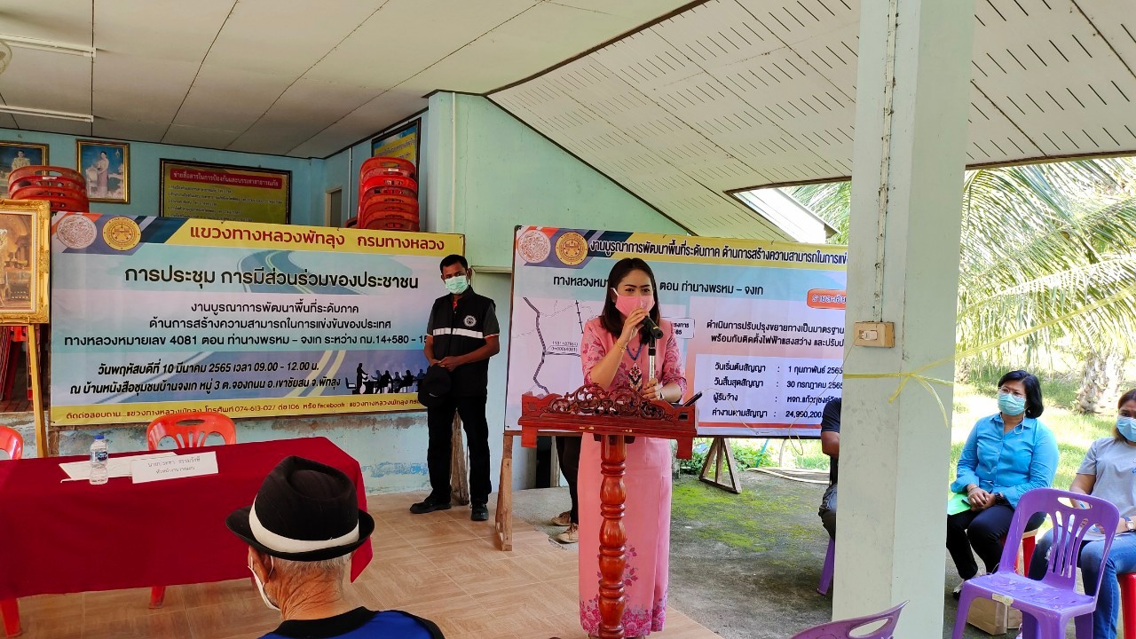 กิจกรรม การประชุมการมีส่วนร่วมของประชาชน ทางหลวงหมายเลข 4081 ตอน ท่านางพรหม - จงเก ระหว่าง กม.14+580 - 15+585