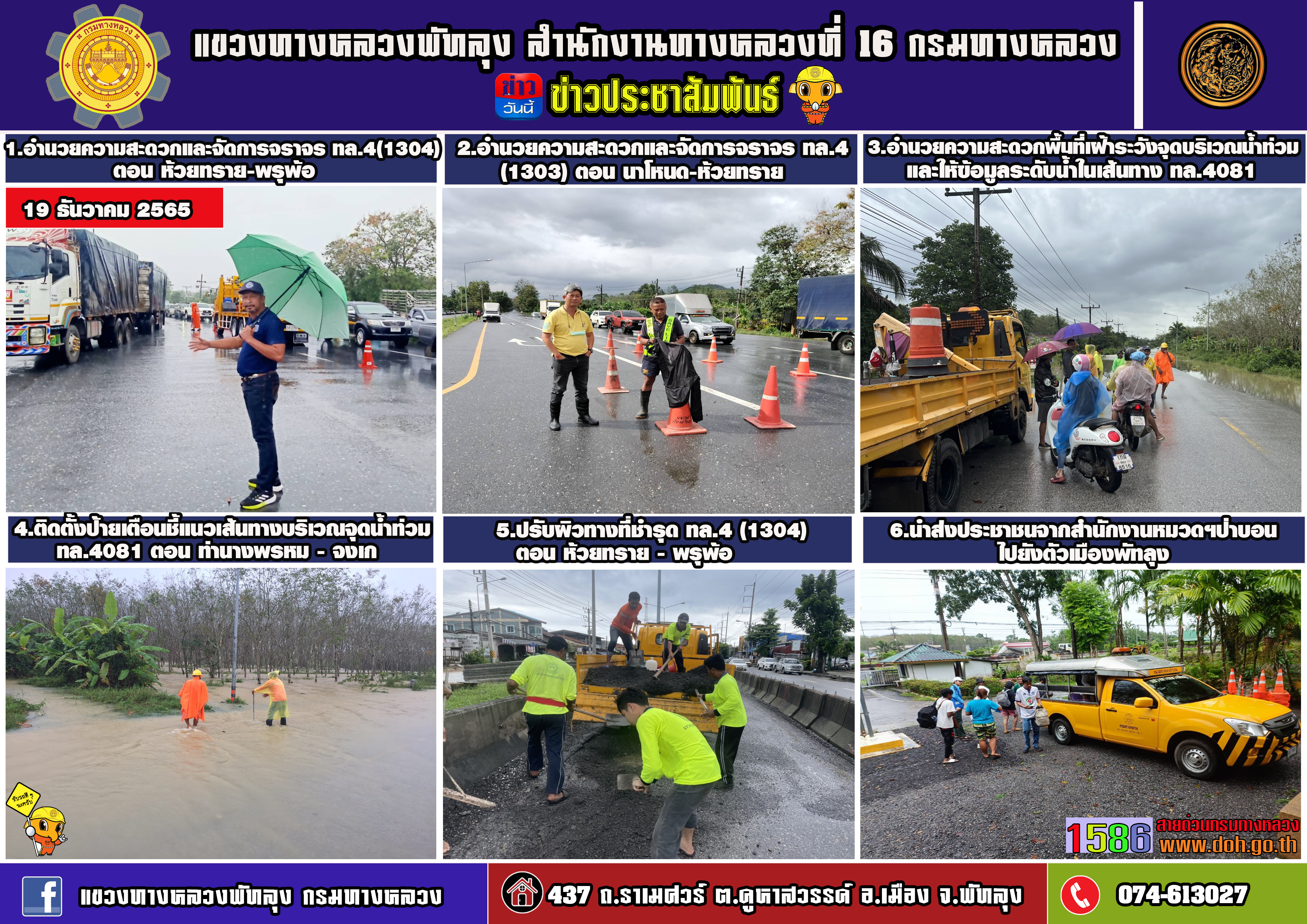 แขวงทางหลวงพัทลุง ขอรายงานสถานการณ์ ทางหลวงหมายเลข 41 และทางหลวงหมายเลข 4 (ถนนเอเชีย) สามารถผ่านได้ตลอดสาย